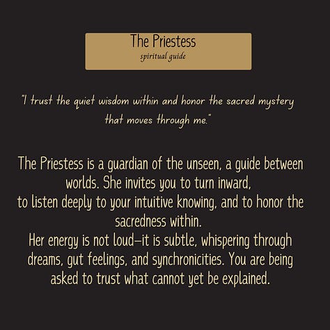 Every month (sometimes e/o), I’ll share one card~something to spark reflection, give you a moment to breathe, and maybe, just maybe, help you see yourself a little differently. You’ll get: