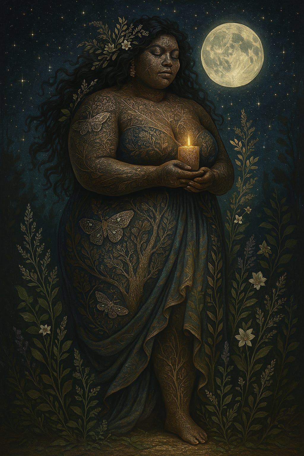 She is the presence that remains when the noise clears—the steady body beneath shifting weather, the knowing that comes only after time has done its work. She teaches that strength is not force, but continuity. Not hardness, but the capacity to hold what matters while releasing what no longer serves.